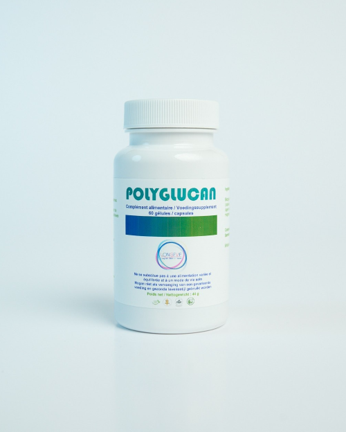 Le POLYGLUCAN LONGEVIE est un complément nutritionnel représentant une source de beta-1,3 glucan, un polysaccharide retrouvé dans les céréales comme l’avoine, dans les champignons et dans la levure (Saccharomyces cerevisiae).