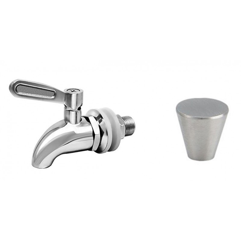 Kit inox pour LONGEFILTRE Maxinox, composé d’un robinet et d’une poignée de couvercle en laiton chromé.